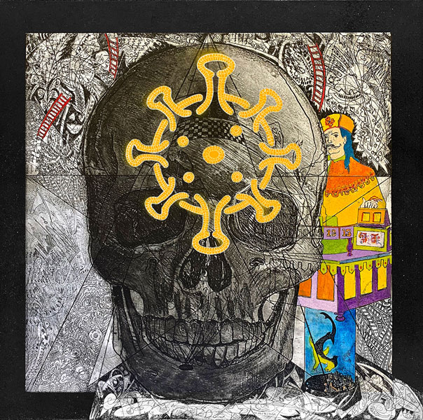 Etching, chine colle and hand colour
